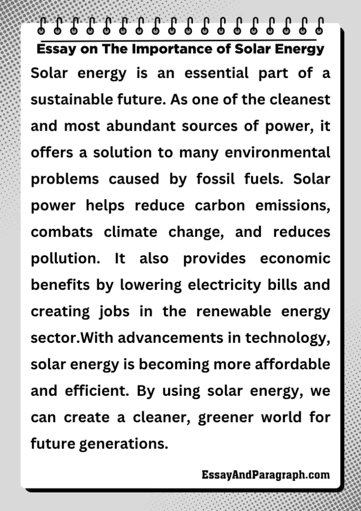 Essay on The Importance of Solar Energy – 200 words